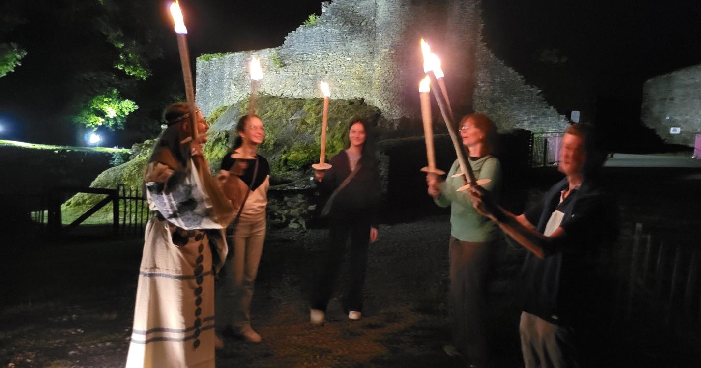 Vandaag leiden Marie-Laure of Michel, 2 gidsen in historische klederdracht, je bij mysterieus opflakkerend fakkellicht en de stilte van de nacht langs alle plekjes van het kasteel. Intussen vertellen ze verhalen over de roemrijke geschiedenis van de plek en zijn heldhaftige ridders.