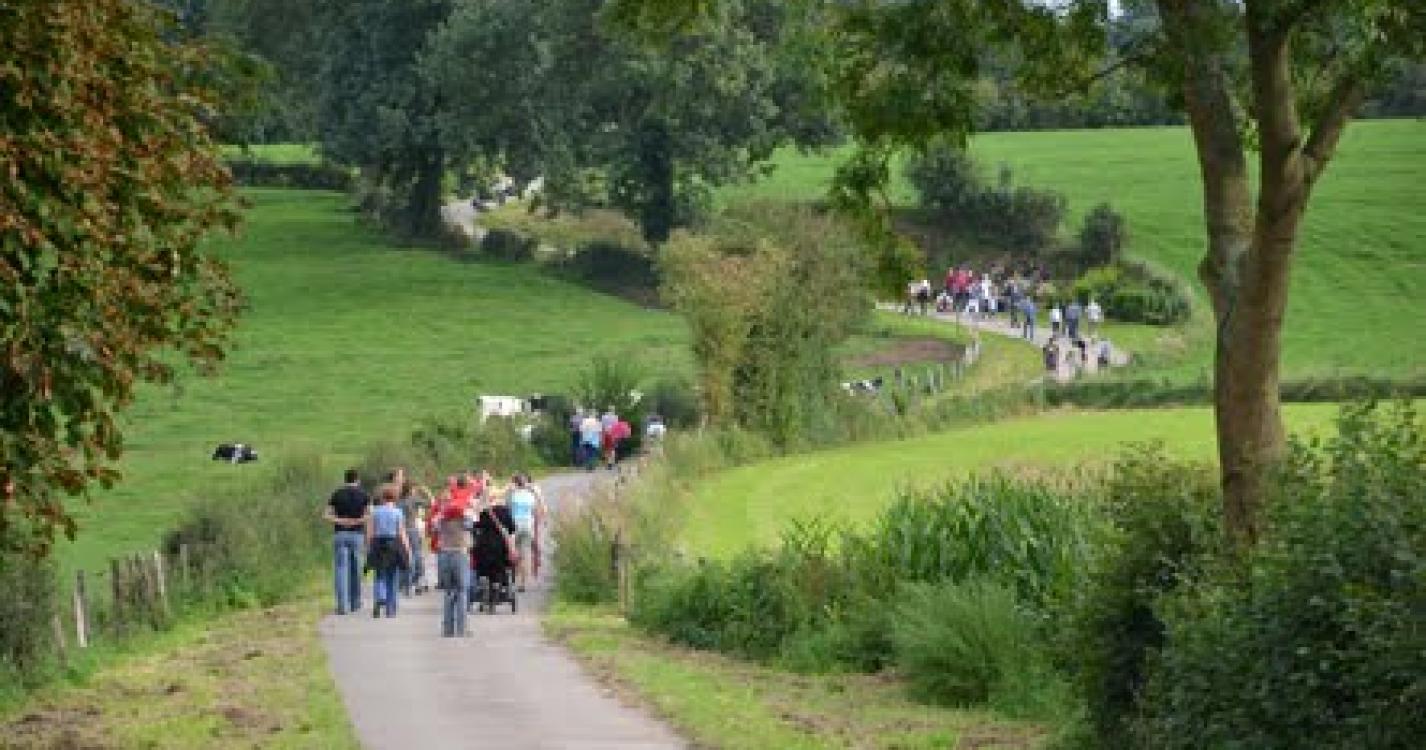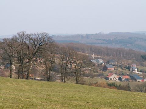 Vanuit Banneux volgt u dezelfde route als wandeling nr. 4 (groene rechthoek). Bij het gehucht Counachamps steekt u we de beek "Ry de Mosbeux" over, die vredig naar de Vesdre stroomt, om richting Stinval te gaan. In het centrum van dit schilderachtige dorp neemt u een pad aan de rechterkant en komt u in het gehucht Blindef, waarvan de kern met name bestaat uit de Sint-Hubertuskapel (1732) en het kasteel van Blindef (1898). Bij het kasteel volgt u een pad naar rechts en gaat u richting Cornémont. U komt bij de plaats genaamd: "Les Trois Tilleuls", lindebomen gepoot, zoals de overlevering vertelt, ter ere van Napoleon. U kunt daar even stoppen om te genieten van het panorama van het platteland van Sprimont. De wandeling gaat verder in het bos van Cornémont, waar u overblijfselen uit het verleden ontdekt zoals "het stenen kruis" of verderop de "Ferme de la Haute Folie". Als u teruggaat naar Louveigné, ziet u respectievelijk de "Chapelle du Trôleu" (1708) en vervolgens het park van het "Château des Fawes" (1927) met een oude ijskelder.