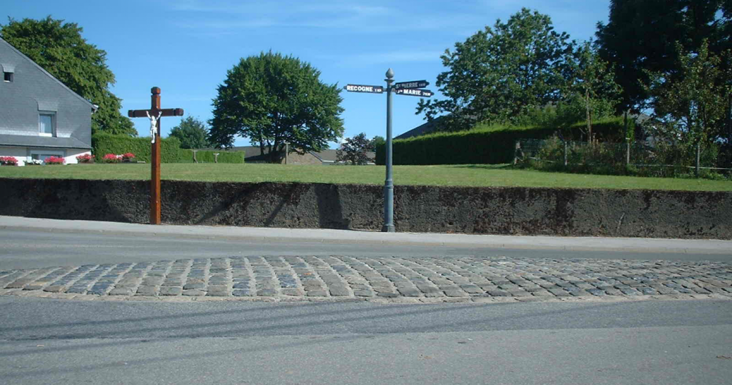 Een wandeling over verharde wegen die we een stadswandeling zouden kunnen noemen. U kunt hier enkele mooie plaatsjes ontdekken tussen twee stedelijke gebieden op deze wandeling die voornamelijk over wegen loopt: de vijver van Neuvillers en de aangrenzende weiden, de aangelegde parken, een oude versteende landweg die u meeneemt naar het hart van “du vieux Recogne”, enz. We bevelen deze wandeling in het bijzonder aan op warme zomeravonden, op drukke uren is deze wandeling echter niet aan te raden.