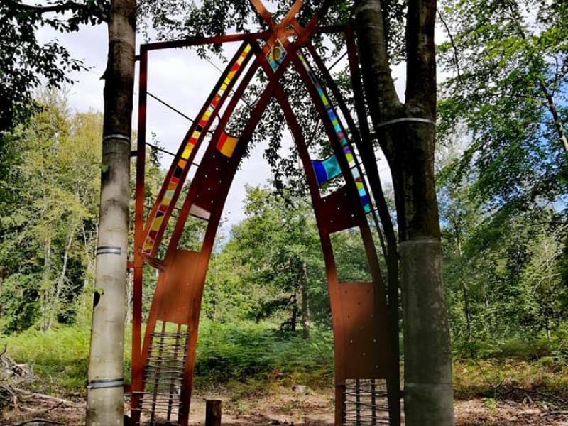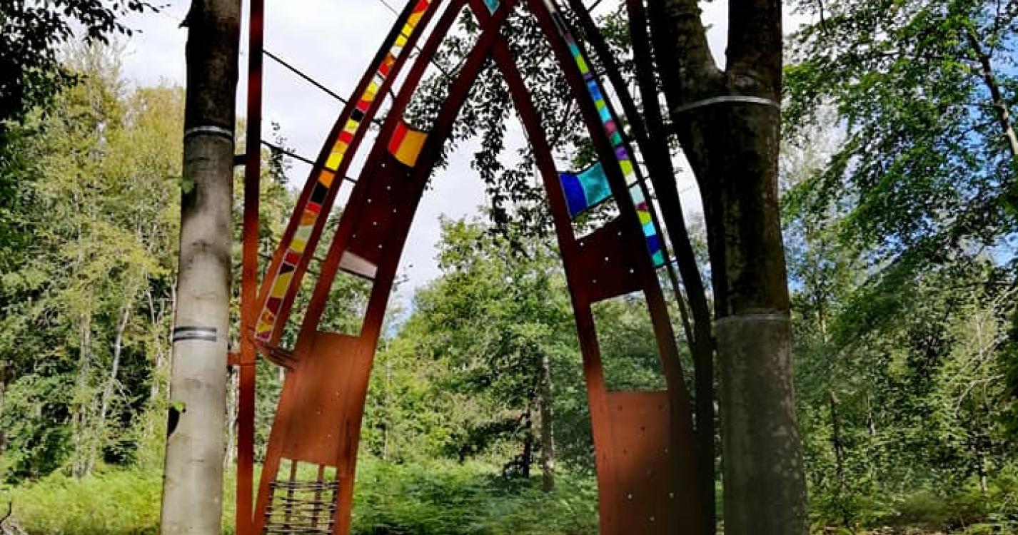Commençons bien, commençons par une bonne petite grimpette ! Soyez attentifs, les œuvres sont parfois un peu cachées mais toujours renseignées ! Laissez-vous emporter par la magie de ces œuvres et laissez-vous bercer par le bruit de l’eau et du vent dans les arbres. Certaines œuvres auraient toutefois besoin d’un petit rafraîchissement.