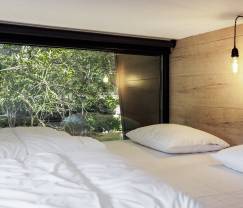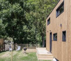 Klein maar fijn. Ongelooflijk fijn zelfs! Want ondanks de kleine afmetingen geniet je in de leefruimtes van dit tiny vakantiehuisje toch van airco, een volwaardige keuken met alles erop en eraan, een knusse zitruimte met tv en een enorm raam dat rechtstreeks uitkijkt op de rivier die op 10 meter van je ligt. Je hebt ook een complete badkamer met douche, wastafel en wc. Overnachten doe je op de bovenverdieping in 2 mezzaninekamers. Deze hebben op het eerste zicht een laag plafond, maar daar wen je onmiddellijk aan. De ene heeft een dubbel bed, de andere 2 eenpersoonsbedden. Ideaal voor een gezin, dus! Buiten heb je een tuintje en een houten terras waar je kan eten en barbecueën. Goed om te weten: ook je hond is hier welkom!