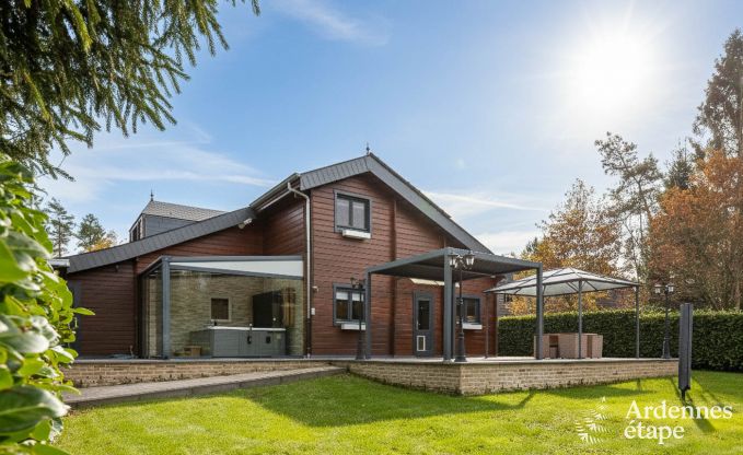 Deze vakantiewoning in de buurt van Durbuy is ideaal voor een familievakantie met kinderen. Met een capaciteit van 9 personen verdeeld over 4 slaapkamers biedt deze vakantiehuis voldoende ruimte en comfort voor iedereen. Het interieur ademt een gezellige chalet-sfeer uit dankzij de houten plafonds die warmte en authenticiteit toevoegen.