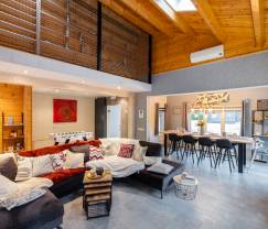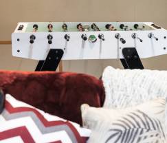 Voor gezinnen met jonge kinderen is er een speciale speelruimte ingericht met een klein speelkeukentje, boeken en kleurmateriaal. In de woonkamer staat een gigantisch tv-scherm klaar voor ontspannende filmavonden, terwijl een tafelvoetbalspel zorgt voor spannende wedstrijden met familie en vrienden.