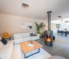De villa beschikt over 4 slaapkamers en 3 badkamers, ideaal voor gezinnen, vrienden of koppels die samen willen genieten van een ontspannen vakantie. Voor de allerkleinsten is er een babybedje, aankleedkussen en een kinderstoel aanwezig, zodat ook zij zich helemaal thuis voelen. De ruime woonkamer is voorzien van een open haard, die zorgt voor een warme en gezellige sfeer tijdens de koelere avonden.