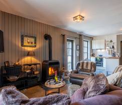 Binnen vind je 3 comfortabele slaapkamers en 1 badkamer, ideaal om met je gezin of vrienden te verblijven. De inrichting is warm en van hoge kwaliteit, met een houtkachel en een sfeervolle cassettehaard die zorgen voor een gezellige ambiance tijdens koelere avonden. Voor gezinnen met een baby is alles aanwezig: een babybedje, kinderstoel en zelfs een babybadje maken het verblijf extra comfortabel. De woonkamer is ruim en licht, met een speciale speelruimte waar de kleintjes zich kunnen vermaken.