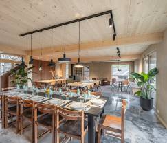 Je groep kan comfortabel ontspannen in de grote eetzaal naast de professionele open keuken met zijn grote toog, die ideaal is voor ontbijtbuffetten. Voor wie hier in businessverband wil verblijven is er een projectiezaal. Her en der zijn er verschillende lounge- en ontspanningsruimten, waaronder een met een gaskachel. Plaats zat dus voor een welverdiende rust na de fietsinspanningen.