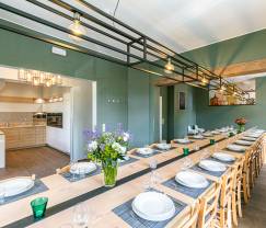 Supermooi en verzorgd huis. Rustige locatie maar toch goed bereikbaar. De ontvangst was zeer aangenaam met de gastvrouw. De tuin was op en top waar we de laatste dag nog een gezellig samenzijn hadden aan de vuurkorf. De slaapkamers waren zeer verzorgd met elk een badkamer. Minpuntje dat de mezzanine heel klein is voor een volwassen persoon. De keuken is zeer ruim maar voor 22 personen te koken mag er wel wat meer kookgerei aanwezig zijn, zijnde grote kookpotten en degelijke pannen.