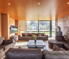 In dit grote vakantiehuis baad je in comfort. Iedere slaapkamer heeft een eigen badkamer, wat heel handig is wanneer je met een grote groep bent. In de leefruimte op de benedenverdieping zorgt het haardvuur voor een warme sfeer. De kelderverdieping staat dan weer in het teken van ontspanning! Je vindt hier een wellnessruimte met sauna en fitness. Maar dat is niet alles: ook de speelkamer (met biljart, voetbaltafel, airhockey en bar) en de bioscoopzaal bevinden zich hier.