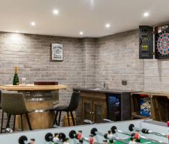 In de kelder is een grote ontspanningsruimte ingericht rond een sauna, en in een gezellige speelkamer kunt u tafelvoetballen en darten.