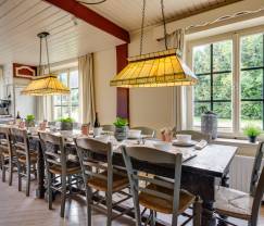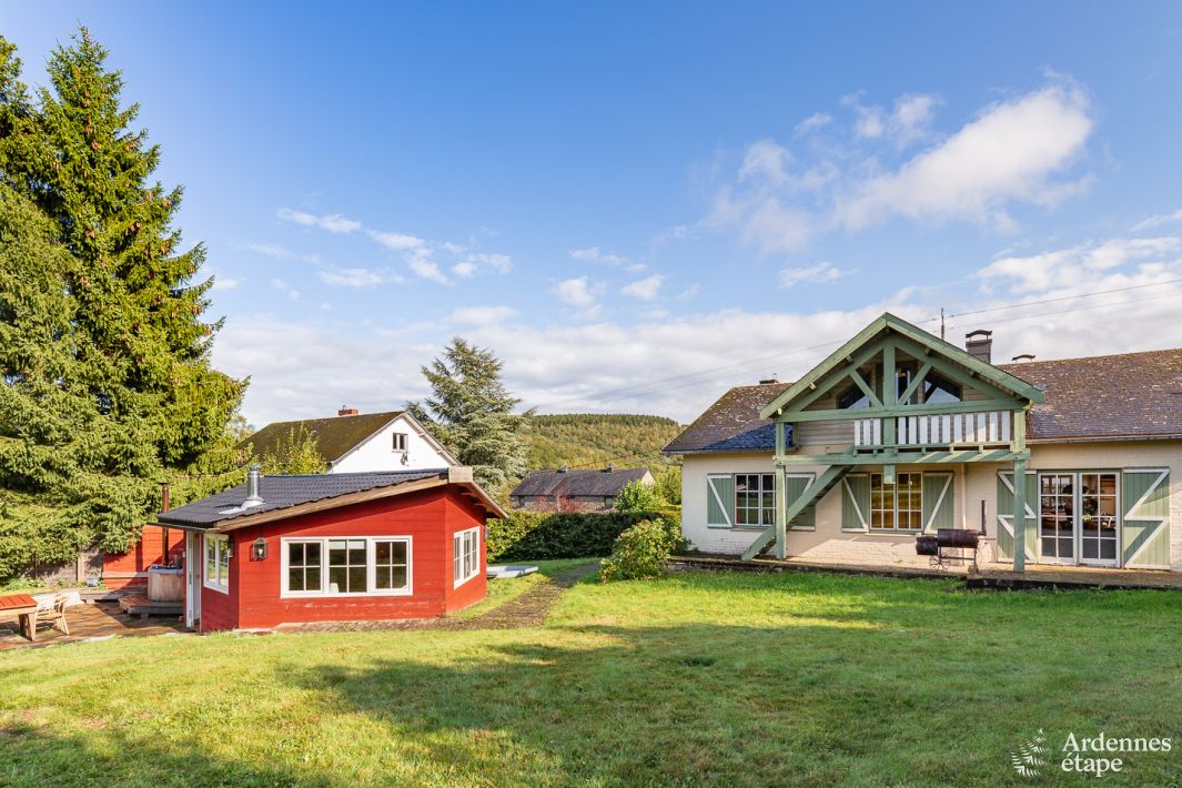 Dit vakantiehuis (3,5*) lijkt wel een cottage uit een of ander geschiedenisboek ... Nochtans beschikt deze grote woning over alle mogelijke comfort voor jou en je groep. De kamers zijn bijzonder licht, cosy en heel modern en fris ingericht. De woonkamer, die aan de eetkamer en de keuken grenst, geeft uit op het terras en de tuin. Zo geniet je van al het moois dat Moeder Natuur te bieden heeft. Het hele huis baadt in het licht en in een rustige sfeer. Dit vakantiehuis voor vijftien personen telt vijf slaapkamers en evenveel badkamers. De slaapzaal voor zes personen – mét voetbaltafel – zal vooral in de smaak vallen bij tieners, uiteraard! Een behaaglijke cocon in de tuin Dit vakantiehuisje kijkt uit op een prachtige tuin en een charmant bijgebouw. Op het terras vind je een heuse hottub, en binnen zelfs een sauna. Ook de gezellige leefruimte met keuken, zithoek en haardvuur is een troef ... Hier trek je je in alle rust even terug uit de groep. Wedden dat je hier niet meer weg wilt?