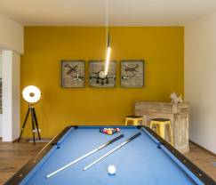 prachtig vakantiehuis op een zeer goeie ligging. Mogelijkheid om te starten met verschillende wandelingen aan het huisje. De slaapkamers met aansluitend de badkamer waren zeer netjes en voorzien van alle comfort. Wat meer eetservies voorzien in de keuken zou zeer aangenaam zijn met een grote groep. De trap is wel heel gevaarlijk, een extra trapleuning en afsluiting boven zou zeker geen overbodige luxe zijn. Verder was alles aanwezig. De biljart was ook aangenaam voor de tieners.