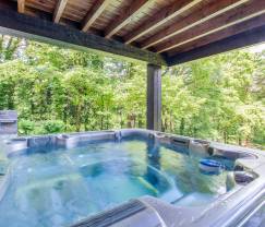 Moment van welzijn in de buitenjacuzzi terwijl je geniet van de tuin.