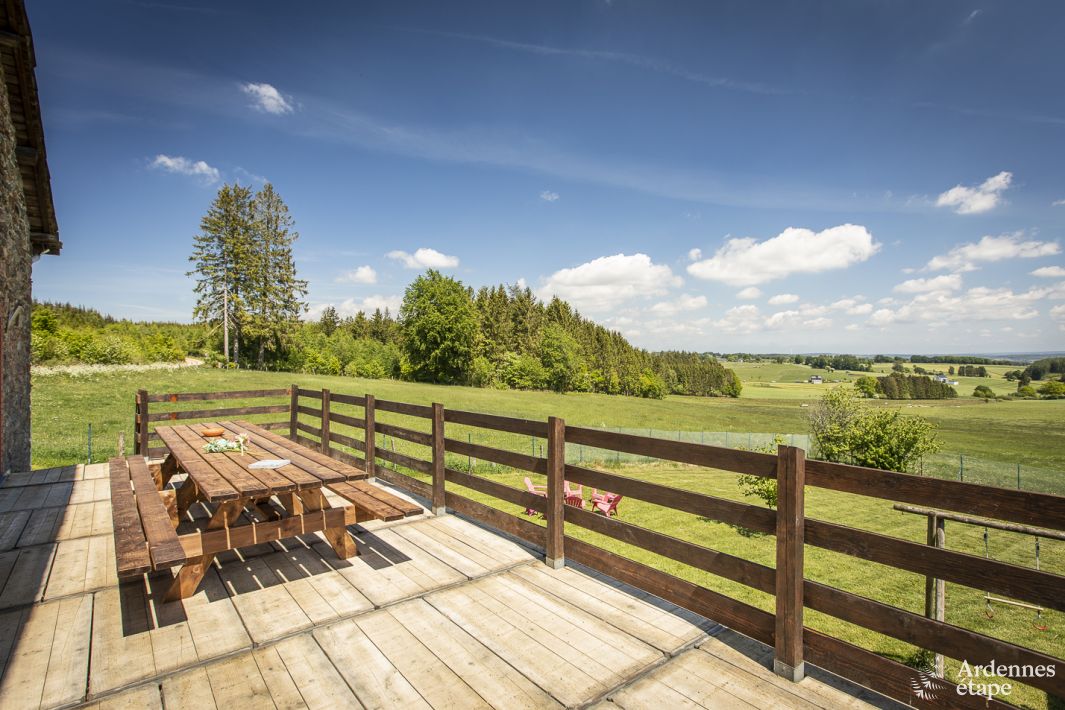 In dit vakantiehuis bij Vielsalm staat rust centraal. Het telt 7 slaapkamers , 4 badkamers , een woonkamer met open haard, een tuin met speeltuigen, een overdekt terras ... De eerste buur die je vanaf dit afgelegen vakantiehuis tegenkomt, woont 1,5 km verderop. Als je boven op de heuvel over de omgeving uitkijkt, word je overspoeld door de overweldigende indruk van het landschap...