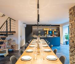 De fermette beschikt over 5 comfortabele slaapkamers en 5 moderne badkamers, wat zorgt voor voldoende privacy en comfort voor iedereen. De kamers zijn smaakvol ingericht met oog voor detail, net als de badkamers die voorzien zijn van alle gemakken. Voor de allerkleinsten zijn er een babybedje en een kinderstoel aanwezig, zodat gezinnen zich meteen thuis voelen.